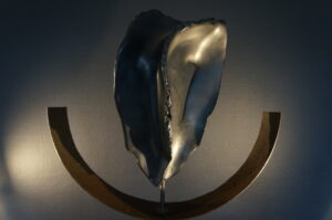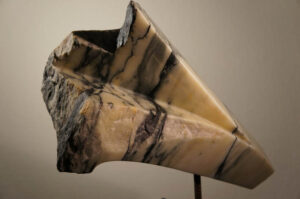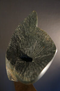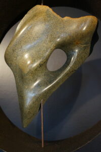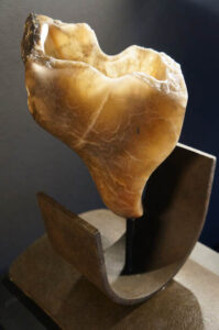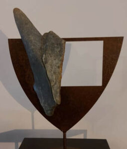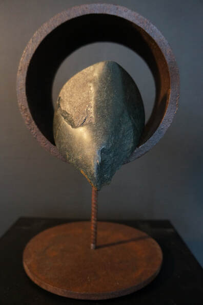 Materiaal: Braziliaans speksteen in stalen frame.