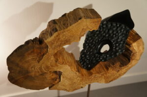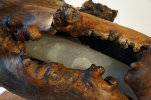 Materiaal: Serpentijn in populier hout/epoxy.