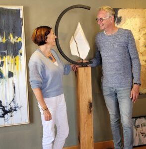 Ron doet het zware werk alsmede het technische gedeelte en Ellen werkt intuïtief aan de stenen.